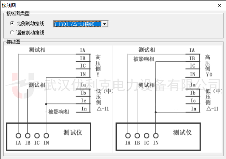 低壓側(cè)(△側(cè)):IB接a相,相位設為180°(反向)以匹配Y/△轉(zhuǎn)換的相位差。