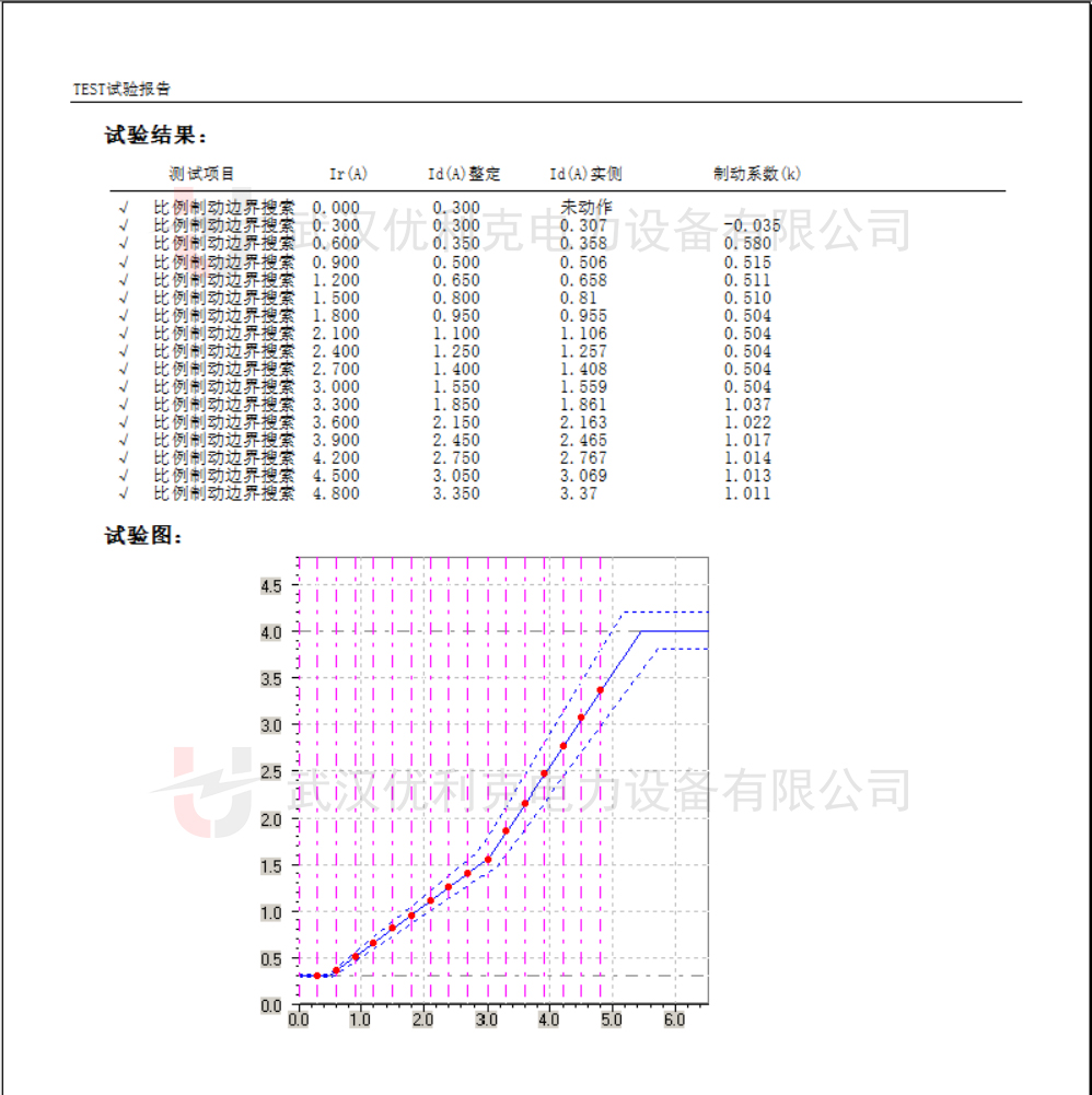 設置多個制動電流點(如Ie、2Ie),觀察差動電流動作值,繪制比率制動曲線。